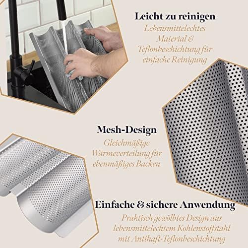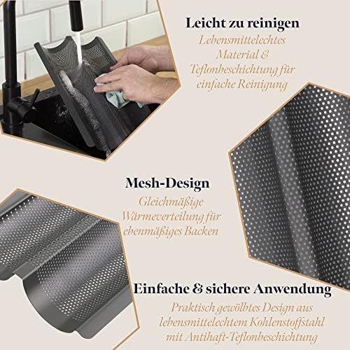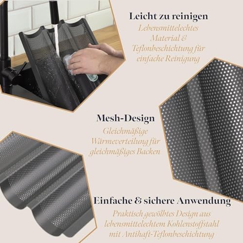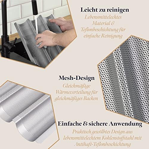 Dank der hochwertigen Antihaftbeschichtung bleibt kein Teig an der Backform haften. Dies bedeutet, dass Sie sich nicht nur über perfekte Baguettes freuen können, sondern auch über eine mühelose Nachbereitung. Kein Ankleben, kein Verschütten – einfach perfekte Backergebnisse ohne Schmutz!