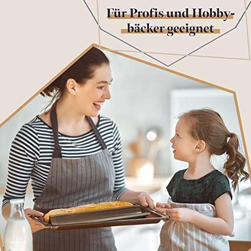 Mit den Maßen von 38,5 x 28,5 x 3,5 cm bietet die Backform Platz für bis zu drei Baguettes gleichzeitig. Diese Größe ist optimal für alle gängigen Standardöfen und ermöglicht es Ihnen, gleichzeitig mehrere Baguettes zu backen – ideal für Familienfeiern oder einfach eine gemütliche Runde mit Freunden.