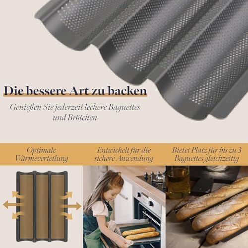 Mit der GOURMEO Baguette Backform holen Sie sich nicht nur ein praktisches Küchenutensil, sondern auch die Freude am Backen in Ihr Zuhause. Überzeugen Sie sich selbst von den fantastischen Ergebnissen und erleben Sie, wie einfach es sein kann, köstliche Baguettes zu Hause zu backen!