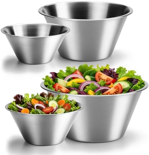 Die eleganten, silberfarbenen Schüsseln sind mehr als nur praktische Küchenhelfer – sie sind auch ein echter Blickfang auf jedem Esstisch. Das zeitlose Design fügt sich harmonisch in Ihre bestehende Kücheneinrichtung ein und verleiht Ihrem Raum eine moderne Note. Verwöhnen Sie Ihre Gäste mit stilvollen Serviermöglichkeiten!