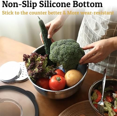 Die Schüssel bleibt stabil, selbst bei kräftigem Mischen auf Marmor-, Holz- oder Glasarbeitsflächen. Der rutschfeste Silikonfuß schützt Ihre Oberflächen vor Kratzern und sorgt für eine lange Lebensdauer des Produkts. So bleibt alles an Ort und Stelle, während Sie Ihre kulinarischen Meisterwerke kreieren.