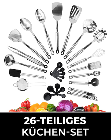 Das Kronenkraft Küchenset ist die ideale Lösung für alle, die Wert auf Effizienz und Funktionalität in der Küche legen. Mit hochwertigen Basics wie Pfannenwender, Schneebesen und weiteren Küchenutensilien erhalten Sie alles, was Sie für die tägliche Zubereitung von Speisen benötigen. Nie wieder das Suchen nach einzelnen Utensilien – alles ist ordentlich in einem Set vereint!