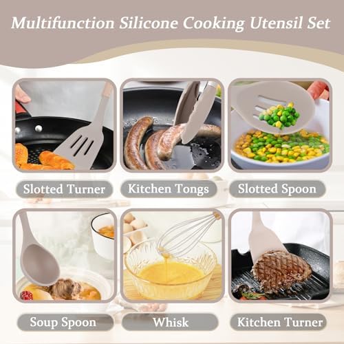 Die Silikontextur der Utensilien ermöglicht eine mühelose Reinigung. Jedes Utensil ist mit einem kleinen Loch am Griffende ausgestattet, was das Aufhängen an der Wand kinderleicht macht. So sparen Sie Platz in Ihrer Küche und halten Ihre Utensilien stets griffbereit. Nach der Nutzung können Sie die Utensilien bequem in einem Behälter aufbewahren, um Ordnung in Ihrer Küche zu schaffen.