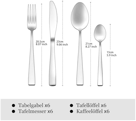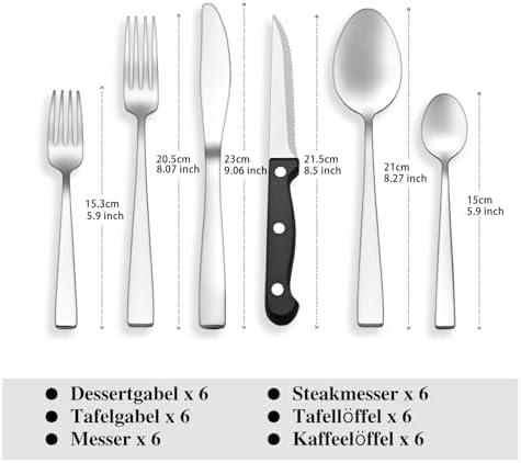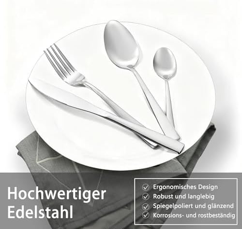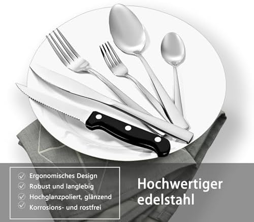 • Pflegeleicht: Spülmaschinenfestes Besteckset für mühelose Reinigung und Pflege – bleibt auch nach vielen Spülgängen in hervorragendem Zustand.