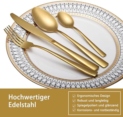 • Ergonomischer Griff: Jedes Besteckstück sorgt für hohen Komfort und ein angenehmes Esserlebnis – perfekt für lange Mahlzeiten mit Freunden und Familie.