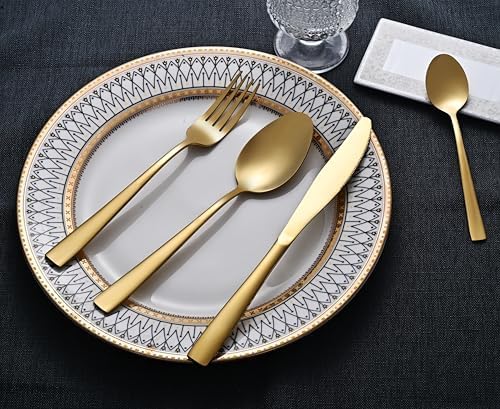 • Komplettes Set für 8 Personen: 32 Teile, inklusive 8 Esslöffel, Gabeln, Messer und Kaffeelöffel, ideal für Dinnerpartys, Feiertage oder Familienessen.