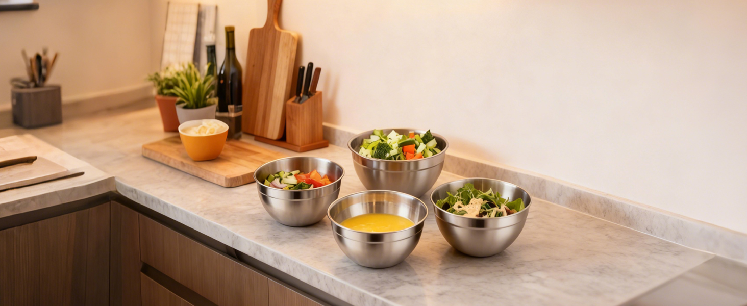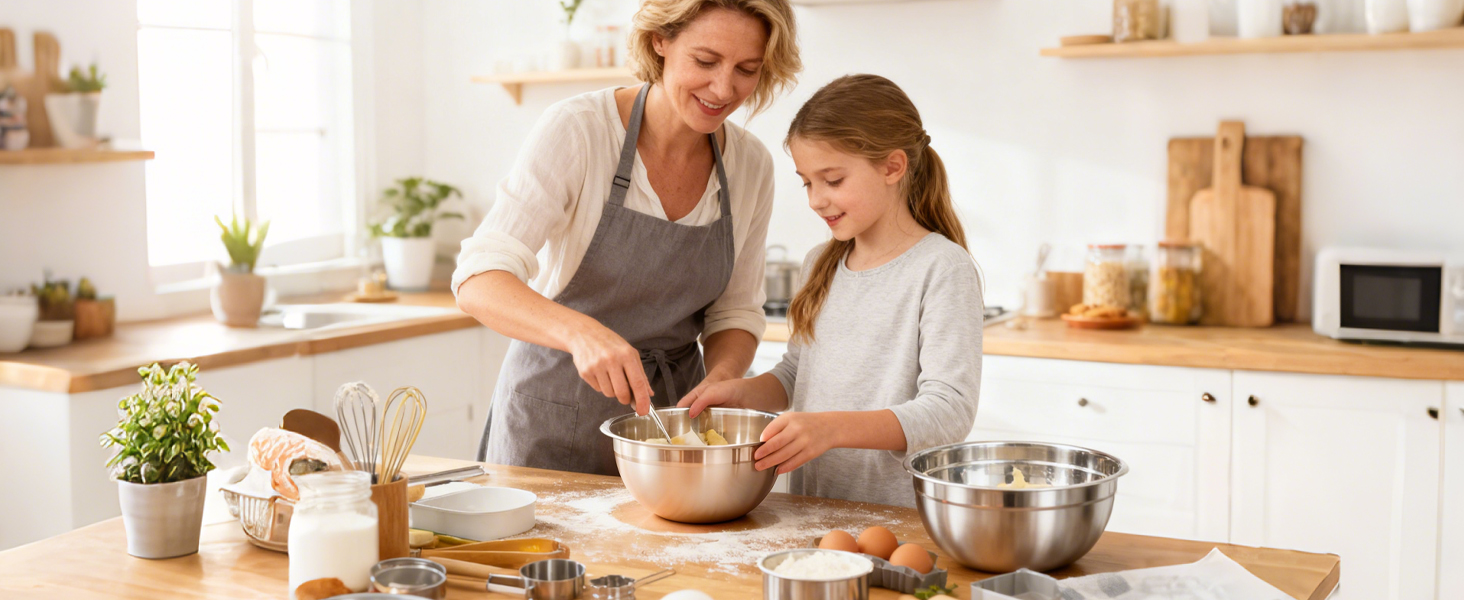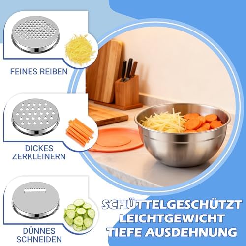 - Robustes Material: Hochwertige Edelstahl-Rührschalen mit hoher Korrosions- und Abriebfestigkeit für langfristige Nutzung.