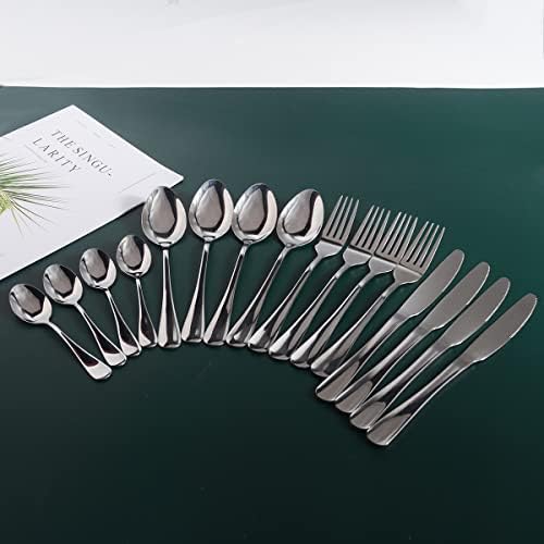 • Vollständiges Set: Enthält 6 Messer, 6 Gabeln, 6 Salatgabeln, 6 Löffel und 6 Dessertlöffel – ideal für jede Dinner-Party.