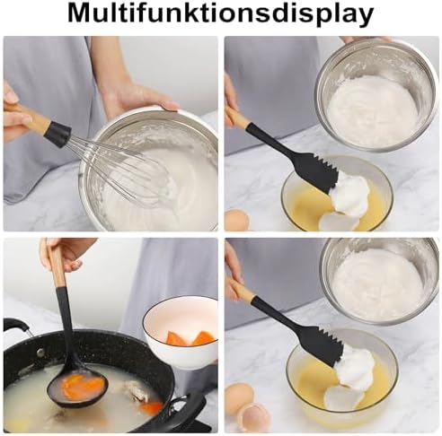 Mit dem 12-teiligen Allzweck-Küchenset aus Silikon sind Sie für jede Kochsituation bestens gerüstet. Die Kombination aus hochwertigem Silikon, ergonomischen Holzgriffen und durchdachten Design-Elementen sorgt für ein wertvolles Kocherlebnis, das sowohl Sicherheit als auch Komfort bietet. Bringen Sie frischen Wind in Ihre Küche und genießen Sie die Vorteile dieses praktischen Sets!