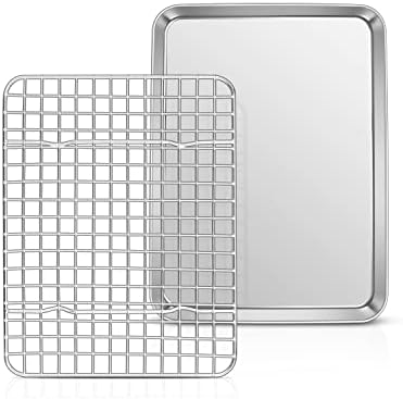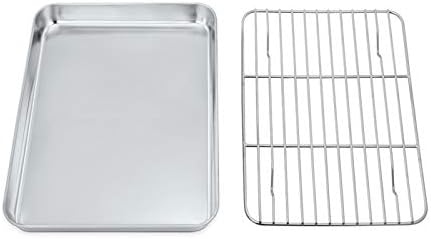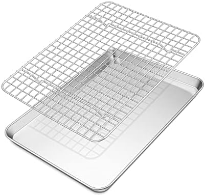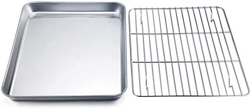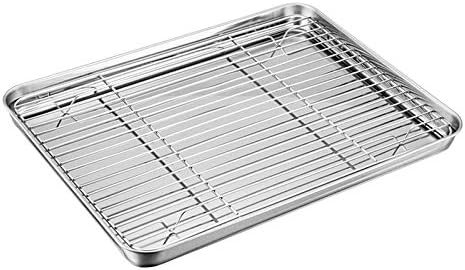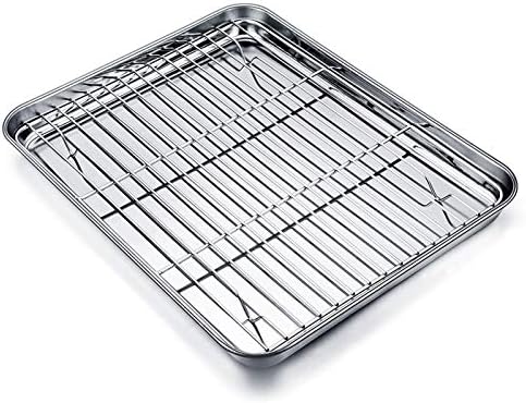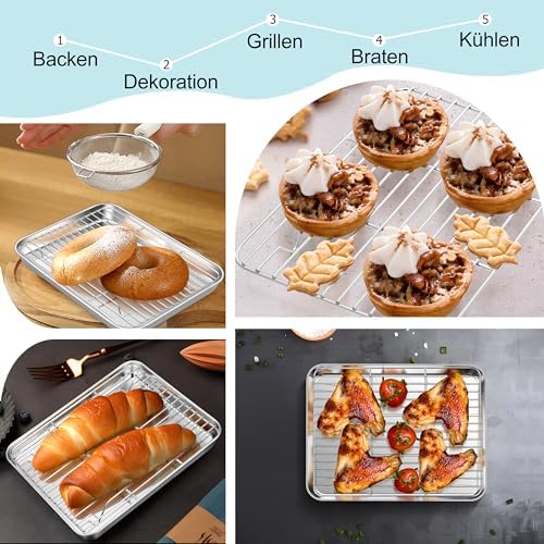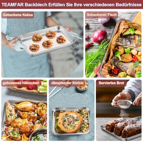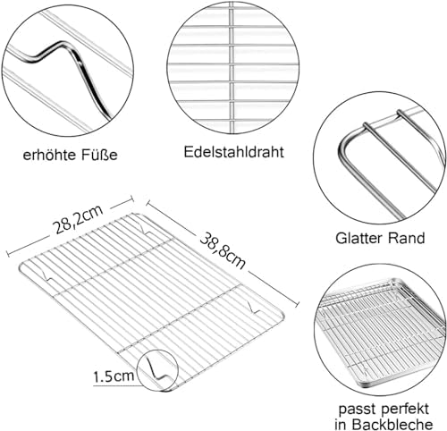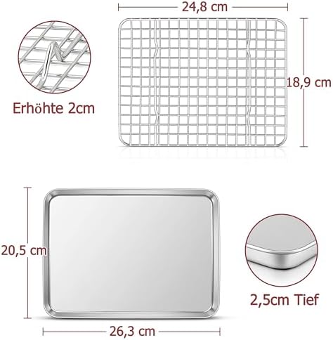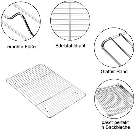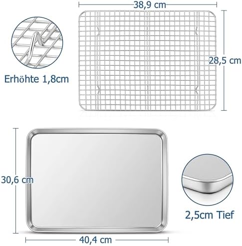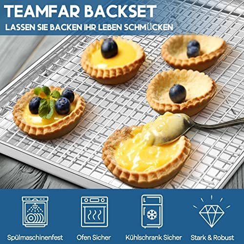 TEAMFAR Rechteckiges Backblech mit Abkühlgitter – Ungiftiges Edelstahl-Kuchenblech, Ideal zum Backen, Spülmaschinenfest,TEAMFAR Rechteckiges Backblech mit Abkühlgitter – Ungiftiges Edelstahl-Kuchenblech, Ideal zum Backen, Spülmaschinenfest,