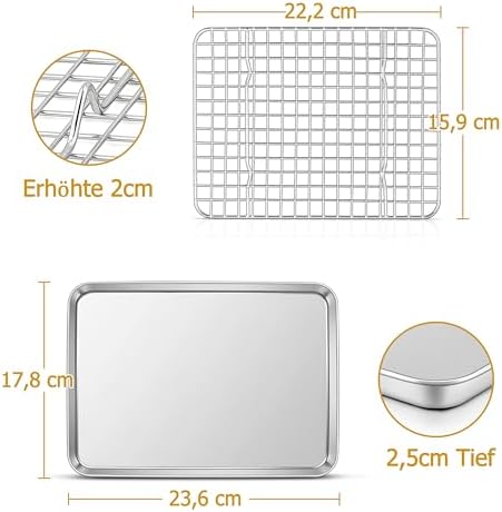 Das TEAMFAR Backblech mit Abkühlgitter liefert nicht nur erstklassige Qualität und Benutzerfreundlichkeit, sondern auch gesundheitliche Vorteile durch die Verwendung von rostfreiem Edelstahl. Machen Sie sich bereit für ein angenehmes, sicheres und effektives Backerlebnis, das Ihre Küche bereichert und Ihre Backkünste unterstützt!