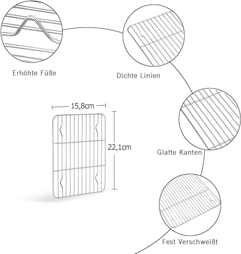 • Durchdachte Gitterabmessungen: Verhindert, dass kleine Lebensmittel durch die Lücken fallen, ideal für feines Gebäck.
