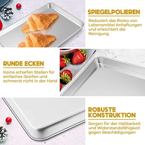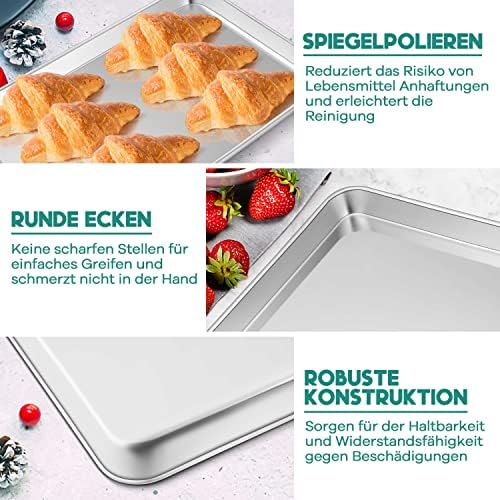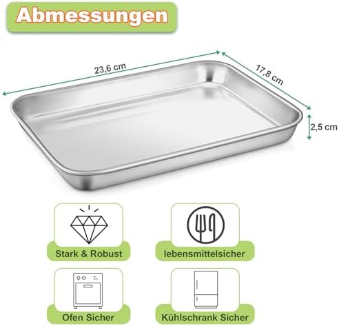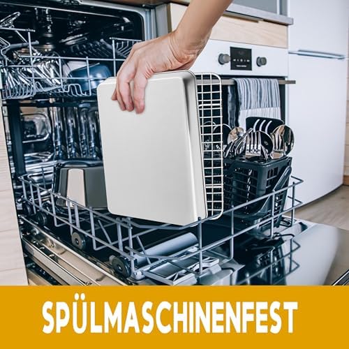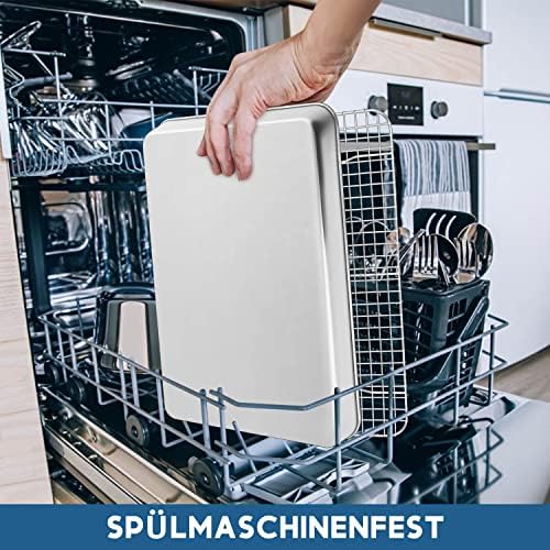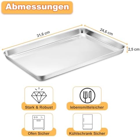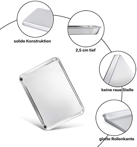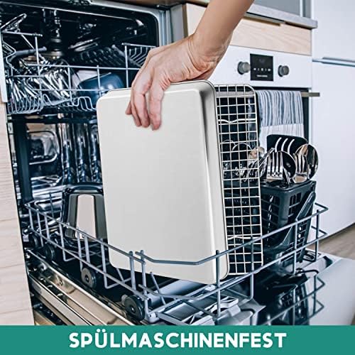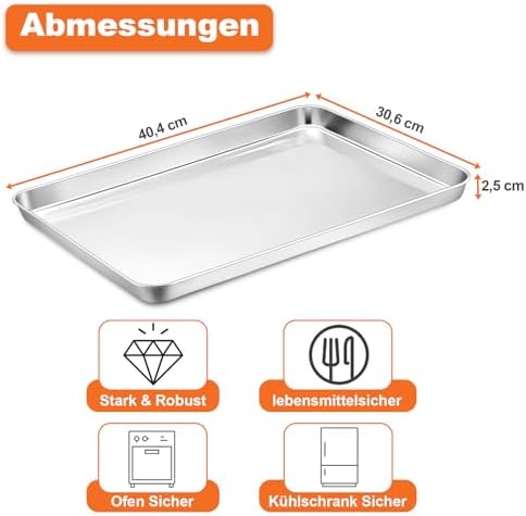 Die solide Bauweise aus hochwertigem Edelstahl sorgt für eine außergewöhnliche Langlebigkeit und Widerstandsfähigkeit gegen Beschädigungen. Mit einer Höhe von 2,5 cm bietet das Backblech genügend Platz für eine Vielzahl von Zutaten, sodass Sie ein Überlaufen im Ofen verhindern und die Sauberkeit bewahren können. Das angemessene Gewicht des Blechs vermittelt ein stabiles Gefühl in der Hand und garantiert eine sichere Handhabung.