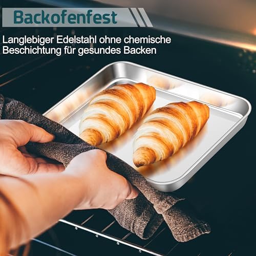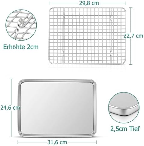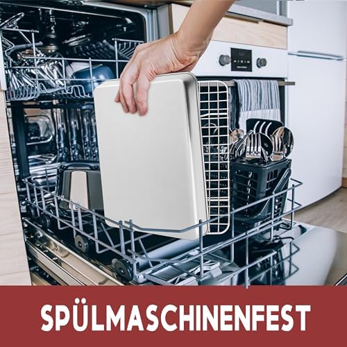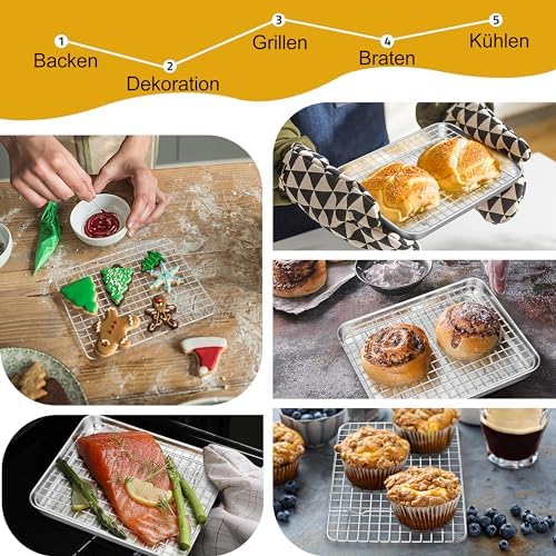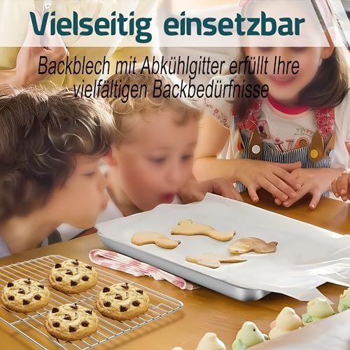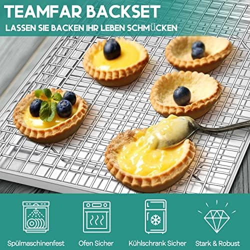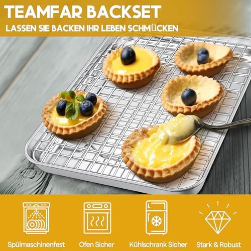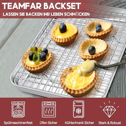 TEAMFAR Rechteckiges Backblech mit Abkühlgitter – Ungiftiges Edelstahl-Kuchenblech, Ideal zum Backen, Spülmaschinenfest,