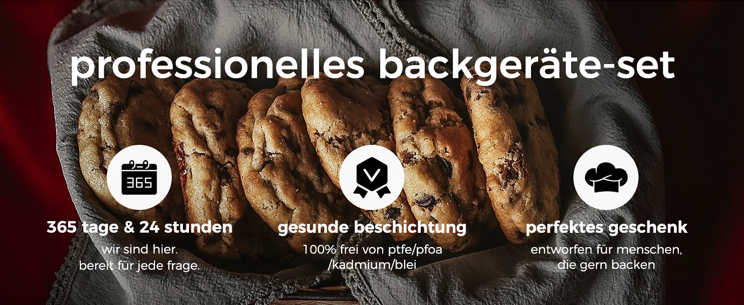 • Gesunde Nichthaft-Beschichtung: Frei von schädlichen Chemikalien wie PFOA, BPA und PTFE – sorgt für unbesorgtes Backen gesunder Speisen.