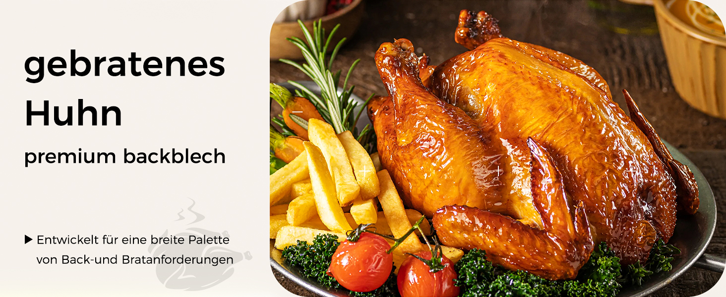 • Durchdachtes Design: Vollständig umrandete Kante verhindert das Austreten von Flüssigkeiten und verbessert die Luftzirkulation für gleichmäßiges Backen.