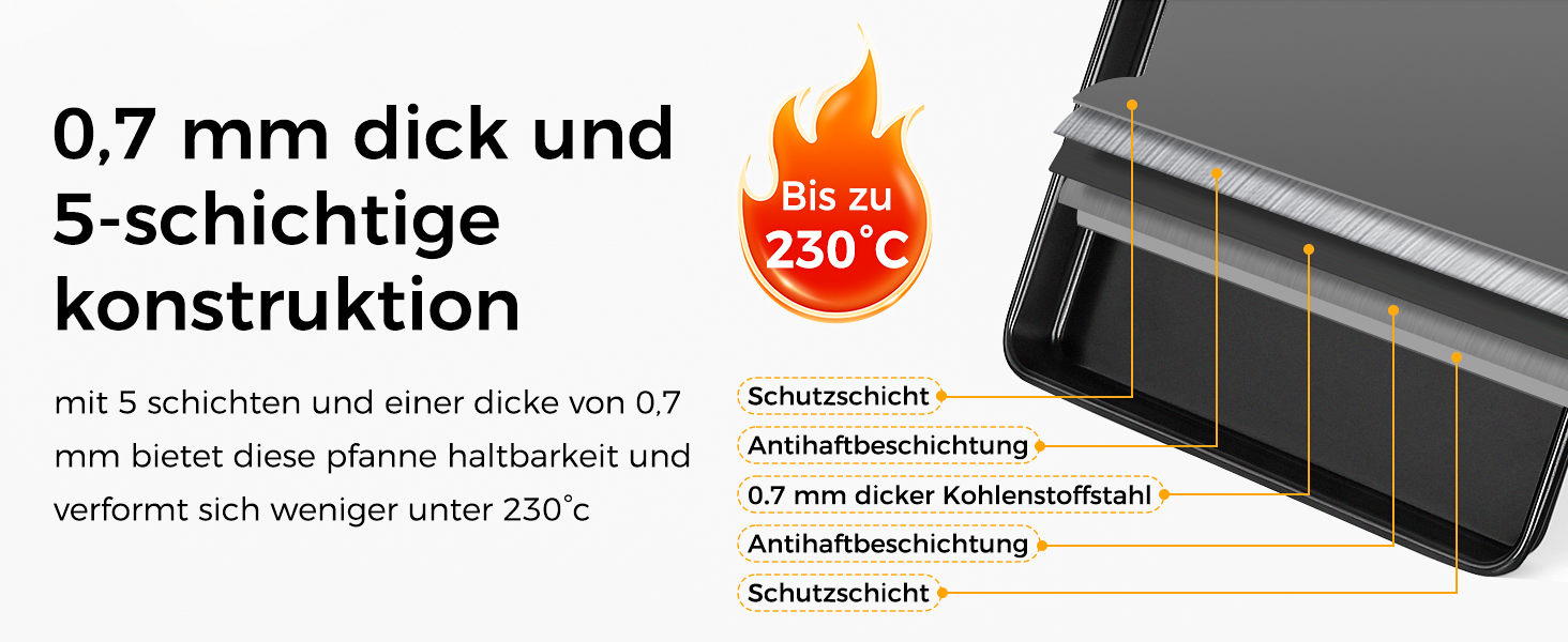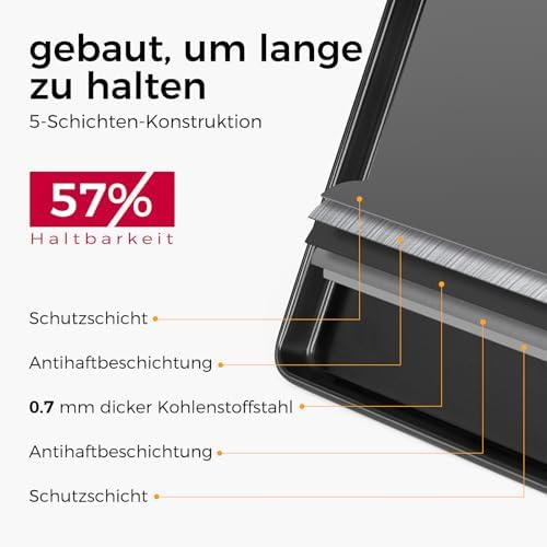 • Hochwertiges Material: Das Backblech-Set besteht aus robustem Carbonstahl, der für seine Stabilität und Langlebigkeit bekannt ist.
