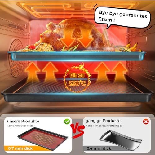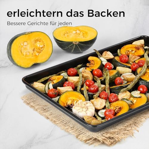 • Perfekte Ergebnisse: Genießen Sie gleichmäßige Backergebnisse und steigern Sie Ihre kulinarischen Fähigkeiten mit diesem professionellen Backblech-Set.