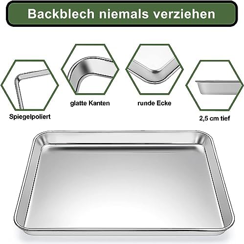 Dieses Ofenblech Set ist aus soliden Stahl hergestellt und verspricht eine langlebige Leistung für viele Jahre. Die robuste Bauweise und das Gewicht lassen das Backblech stabil in der Hand liegen, was Ihnen ein sicheres Gefühl beim Backen gibt. Verlieren Sie niemals die Kontrolle oder sorgen Sie sich über schlechte Qualität – hier erhalten Sie ein Produkt, das hält, was es verspricht.