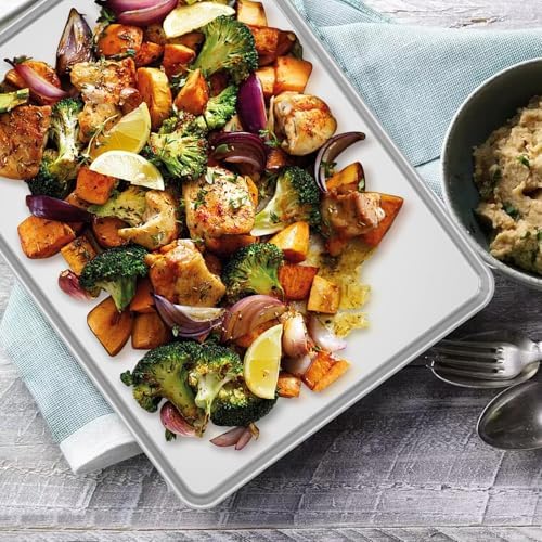 Mit zwei Auflaufformen (Maße: 40,5 x 30,4 x 2,5 cm) können Sie verschiedene Gerichte gleichzeitig zubereiten. Egal, ob Sie köstliche Kuchen, frisches Brot, Lasagne, Brownies oder Kekse backen möchten, dieses Backblech ist ein wahres Multitalent. Es eignet sich zudem hervorragend zum Braten von Hähnchen, Gemüse und Fisch, sodass es all Ihren kulinarischen Bedürfnissen gerecht wird.