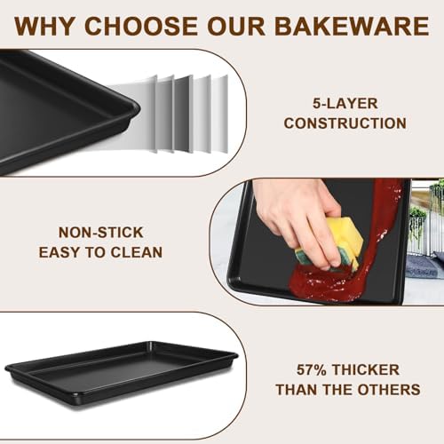 Terlulu Backblech Set 3er, antihaftbeschichtet & aus Karbonstahl für perfekte Kekse im Ofen