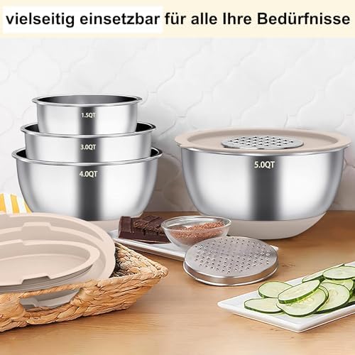 Das vielseitige Rührschüssel-Set von Terlulu ist der ideale Begleiter für jede Küche. Mit sechs verschiedenen Größen (4,7 l, 3,8 l, 2,8 l, 1,9 l, 1,4 l und 0,6 l) deckt es alle Grundbedürfnisse beim Kochen und Backen ab. Je nach Kochprojekt können Sie die perfekte Schüssel auswählen.