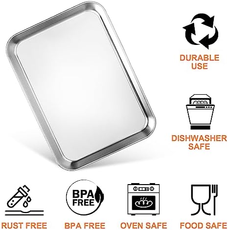 Die Backbleche sind aus 100 % hochwertigem Edelstahl gefertigt, ohne giftige chemische Beschichtungen. Sie müssen sich keine Sorgen um die schädlichen Auswirkungen von Aluminium machen, da unser rostbeständiges und langlebiges Material perfekt für den täglichen Gebrauch ist. Genießen Sie unbesorgt Ihre Back- und Kochprojekte, ohne die Gesundheit Ihrer Familie zu gefährden.