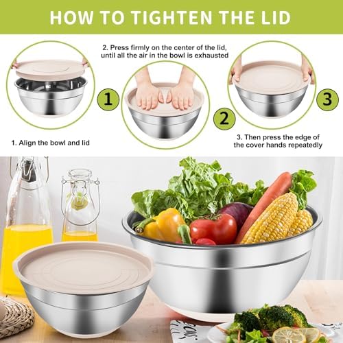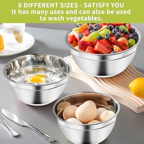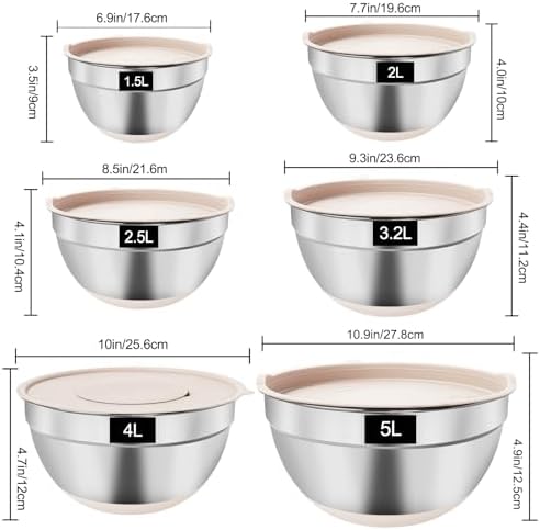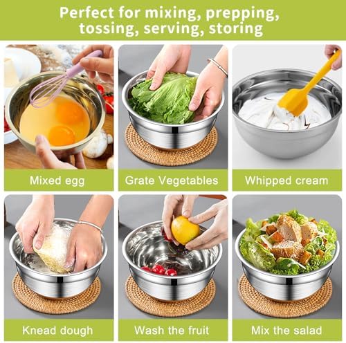 Unsere Rührschüsseln sind so konzipiert, dass sie platzsparend gestapelt werden können, was besonders in kleinen Küchen von Vorteil ist. Die rutschfesten Silikonböden sorgen dafür, dass die Schüsseln beim Mischen und Schlagen stabil bleiben und nicht verrutschen. Damit gelingen Ihnen alle Koch- und Backvorgänge mühelos und ohne Störungen.