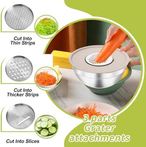 Das Set umfasst insgesamt 6 verschiedene Größen (2.9L, 2.3L, 1.8L, 1.4L, 1.1L, 0.8L) und bringt zusätzlich 3 Reiben sowie ein 7-teiliges Werkzeugset mit. Dazu gehören auch 10 Messlöffel, 2 Schaber und 2 Fingerlinge mit Verbrühschutz. Mit dieser breiten Palette an Tools und Größen sind Sie bestens ausgestattet für alle Koch- und Backbedürfnisse.