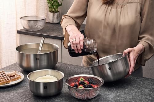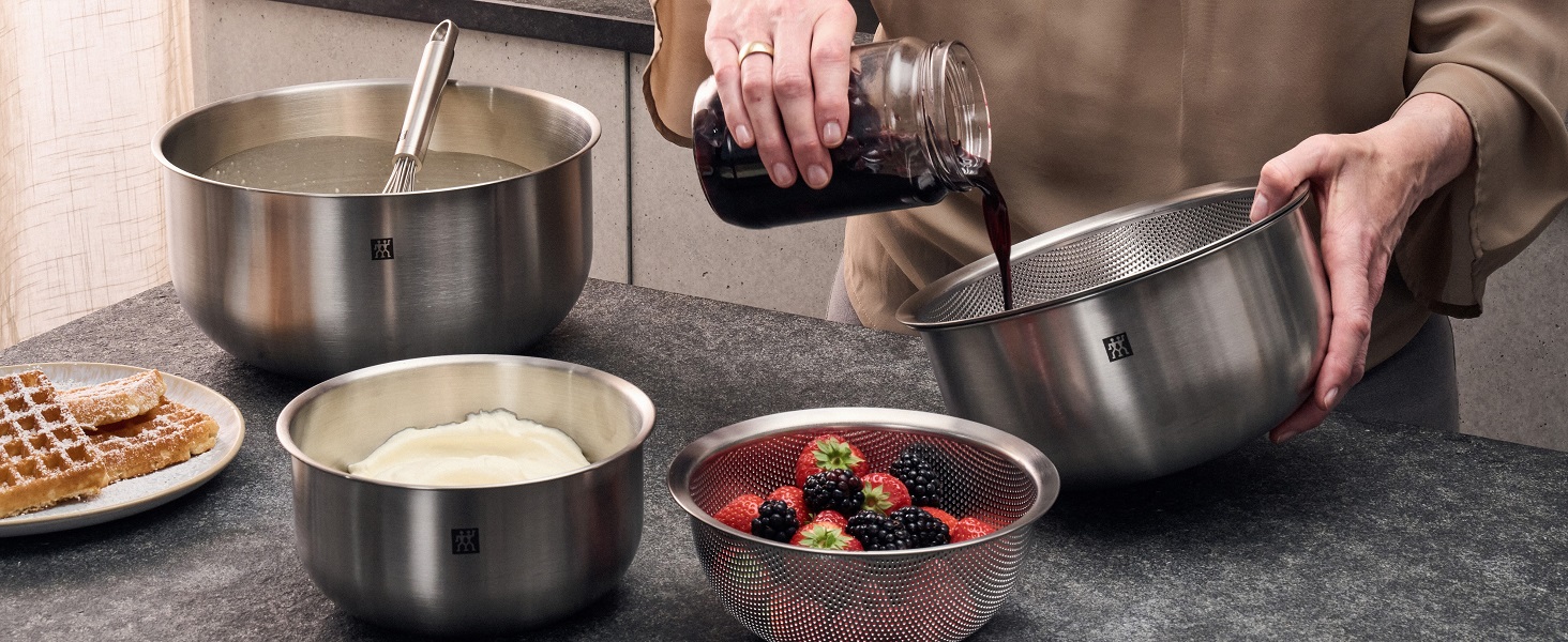 Ob beim Kochen, Backen oder Servieren, dieses Set ist Ihr idealer Begleiter in der Küche. Mit Durchmessern von 17 cm, 21 cm und 25 cm bieten die Schüsseln die perfekte Größe für alle Ihre Küchenbedürfnisse. Egal, ob Sie einen Salat zubereiten, Teig kneten oder verschiedene Zutaten mischen – die Schüsseln erfüllen alle Aufgaben mit Bravour. Zudem lassen sich die Schüsseln hervorragend mit den ZWILLING Table Sieben kombinieren, um ein noch reibungsloseres Kocherlebnis zu ermöglichen.